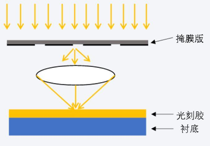 投影光刻技術(shù)有效提高分辨率:20世紀(jì)70年代中后期出現(xiàn)投影光刻技術(shù),基于遠(yuǎn)場傅里葉光學(xué)成像原理,在掩膜版和光刻膠之間采用了具有縮小倍率的投影成像物鏡,有效提高了分辨率。早期掩膜版與襯底圖形尺寸比為1:1,隨著集成電路尺寸的不斷縮小,出現(xiàn)了縮小倍率的步進(jìn)重復(fù)光刻技術(shù)。