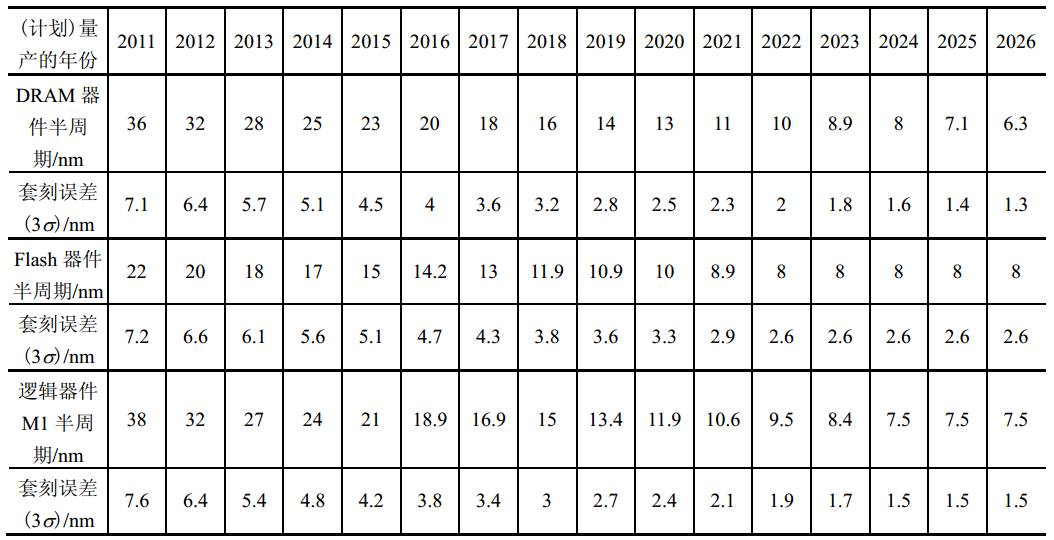表1 每一個技術(shù)節(jié)點允許的套刻誤差